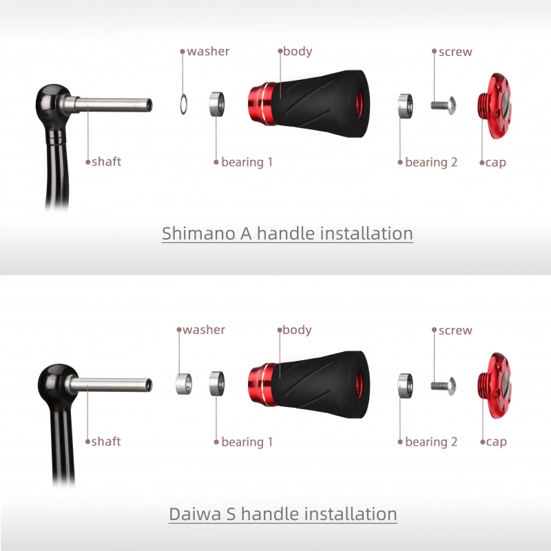 Fremstillet i aluminium og EVA som både er slidstærkt og giver et rigtig godt greb, selv på regnvejrsdage. Disse egner sig bedst til mindre hjul i størrelserne 500-2500 / 3000, men kan også monteres på større modeller. Fås i flere farver, der matcher netop din rulle! Passer til både snurrende hjul og baitcasting-hjul. Størrelse og vægt: 0,79 «/ 20 mm, 7 gBemærk venligst: Boremontering er ikke tilgængelig, da der ikke er nogen tilgængelig akselDirekte montering til Shimano spinninghjul Håndtag A: (16) Stradic CI4+ 1000 – 4000?(06 ) Sephia 2500, (09) Sephia 3000, (08) (10) (12) (17) Sephia CI4+ 3000, (07) Sephia BB 2500,(10) (11) (13) (18) Sephia BB 3000Direkte montering til Shimano Baitcasting-hjul: Antares, Aldebaran, Bantam, Bass Rise, Bass One, Curado ,Calcutta Conquest?Chronarch, Cardiff, Casitas, MetaniumDirekte montering til Daiwa Spinning Reel Handle S: Fuego LT , Ballistic EX LT 1000 – 4000?Caldia LT 1000 – 6000,?18?Tatula LT 2000S-XH / 2500S / 2500S-XHDirekte montering til re: Zillion, Tatula, Steez, RyogaFor flere modeller, se venligst billeder.